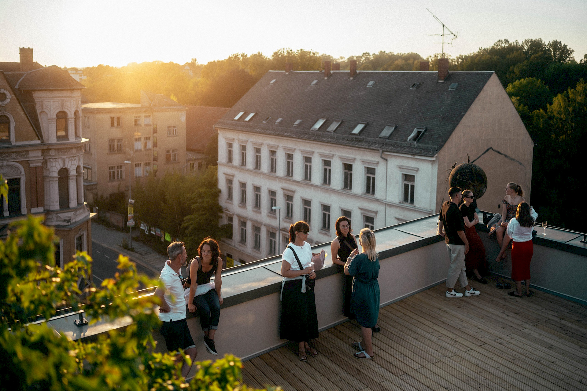 Ab 17 Uhr öffnet unsere loop rooftop bar ihre Türen. Hier könnt ihr zwischen und nach den Führungen verweilen, frische Cocktails genießen und den Blick über Chemnitz schweifen lassen – ein Ort, an dem urbane Energie auf entspannte Atmosphäre trifft.