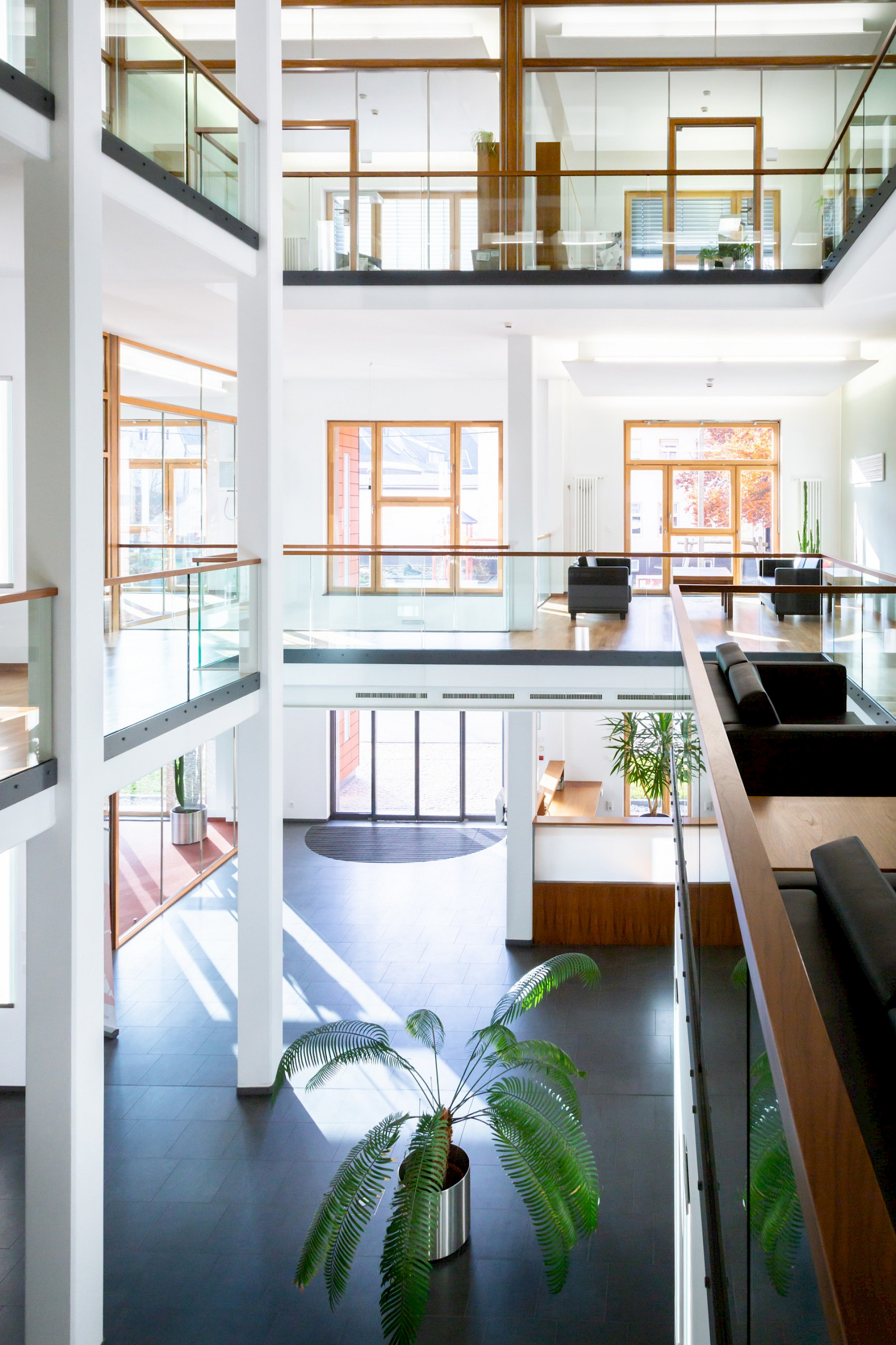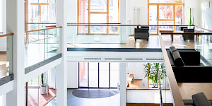 Der Besucherparkplatz befindet sich neben dem Haupteingang der Fabrikstraße 5. Falls dieser belegt ist, nutzen Sie bitte den Mitarbeiterparkplatz hinter dem Gebäude.